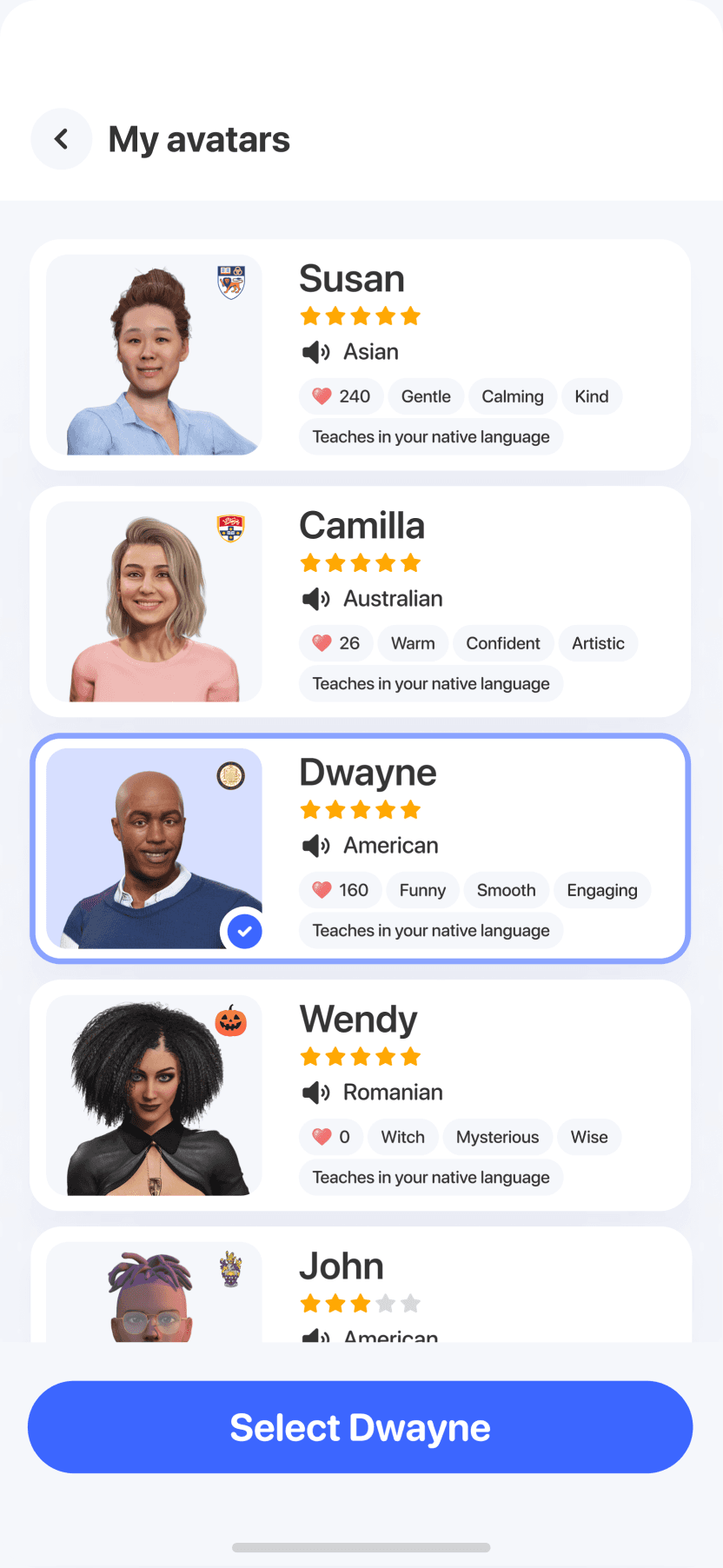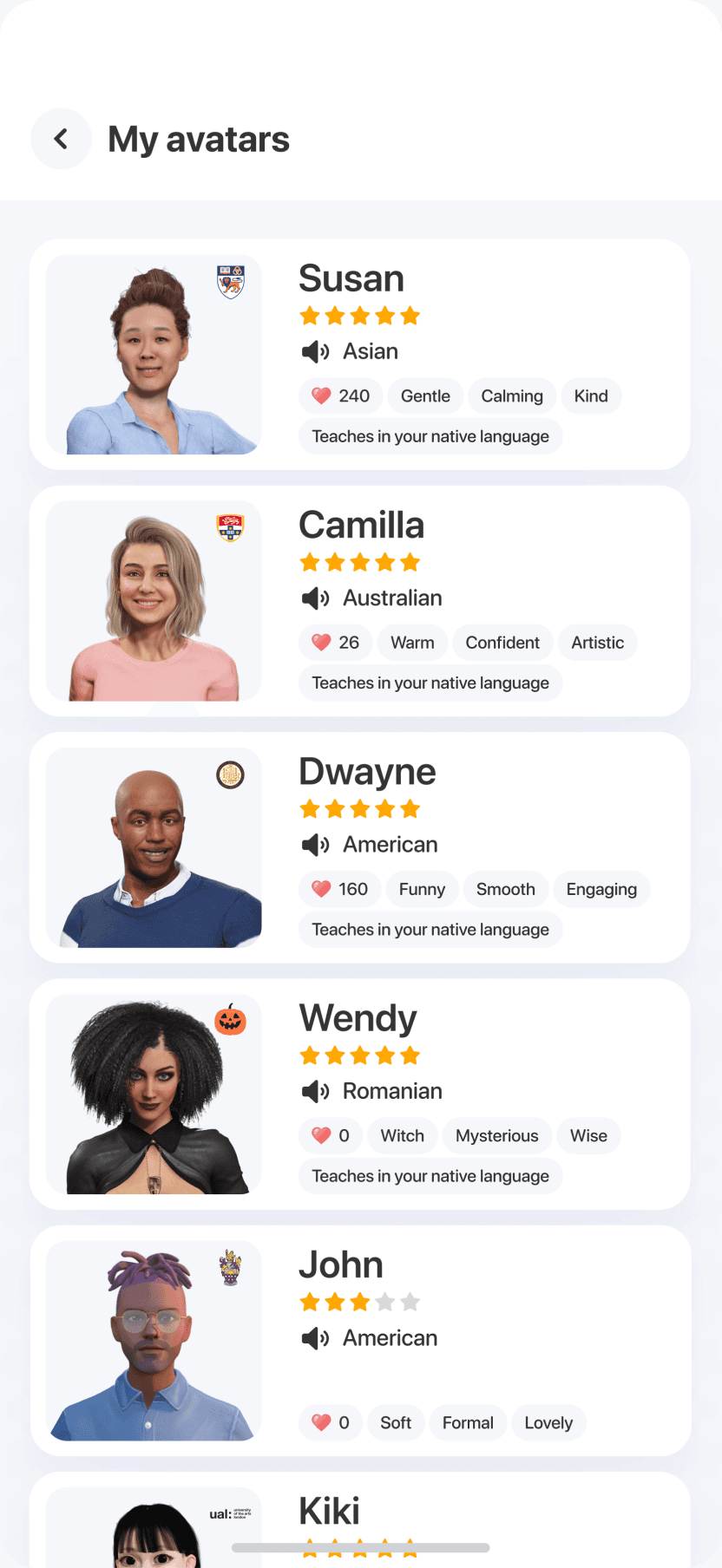 Карточки были пересобраны так, чтобы давать цельный образ тьютора за секунду: акцент, профессиональный бэкграунд, особенности речи, эмоциональный стиль.
