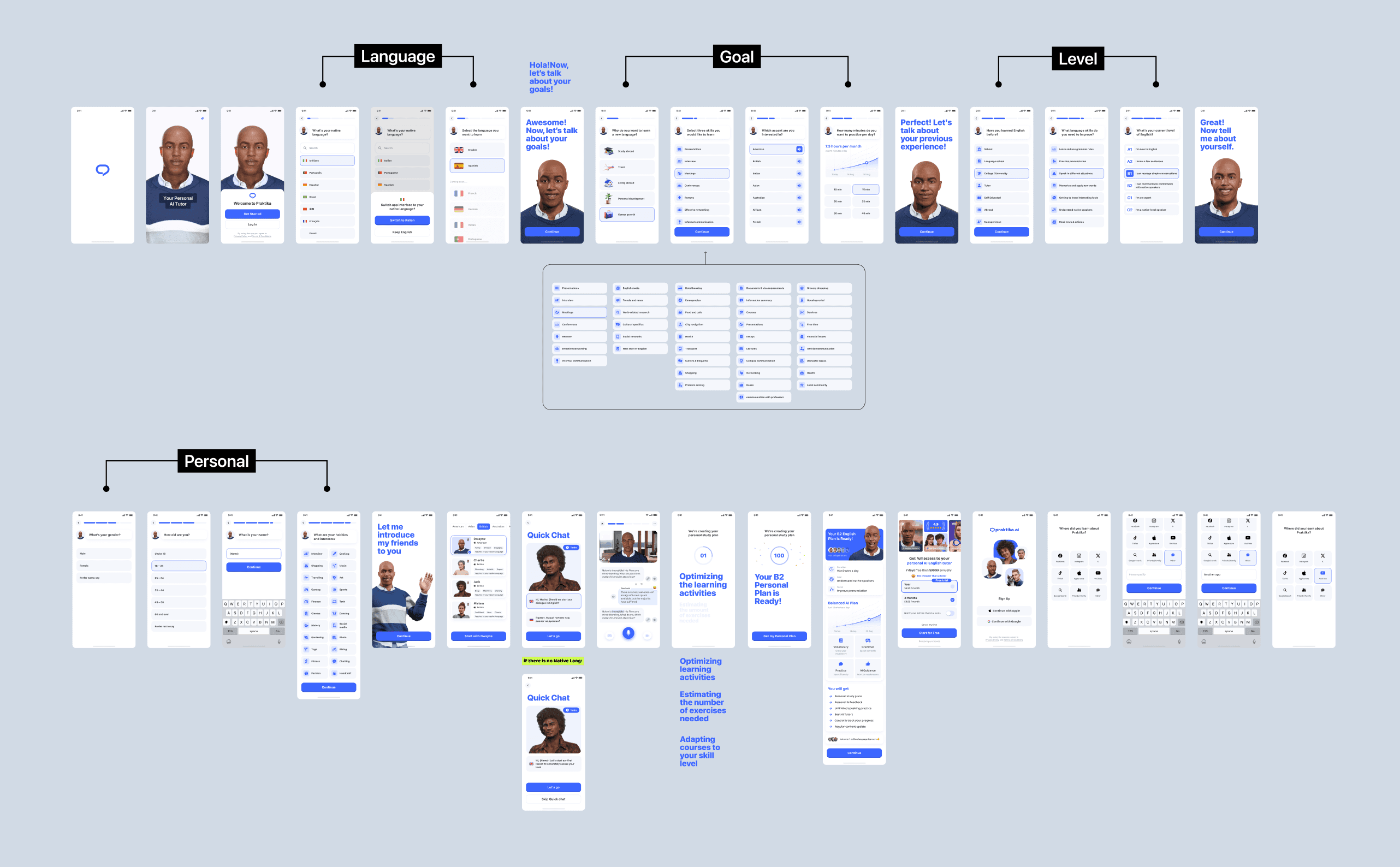 Исходный онбординг был выстроен как последовательность шагов, необходимых для персонализации. Однако из-за отсутствия чёткого ритма