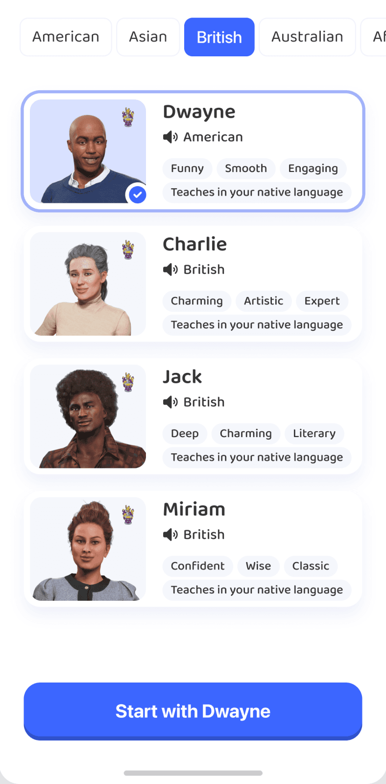 Выбор аватара: Добавили фильтрацию по акценту.